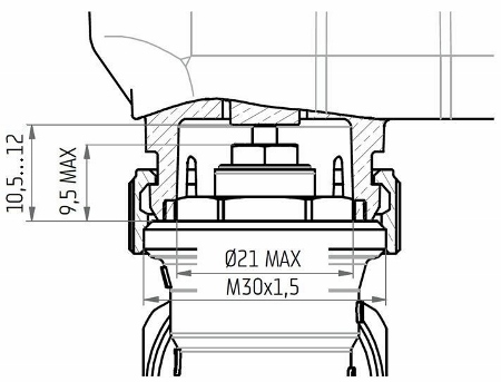 На каждый отопительный прибор, оснащенный термостатическим клапаном, устанавливается компактный радиосервопривод с встроенным датчиком температуры (рис. 3). Для монтажа сервопривода VEQ термостатические клапаны должны иметь стандартнуюприсоединительную резьбу М30х1,5 (рис. 4).