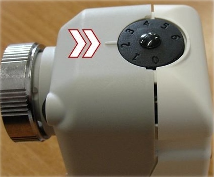 Степень открытия термостатического клапана, которым управляет радиосервопривод, может быть определена по диску-позиционеру, имеющемуся на приводе (рис. 9). Позиция «0» диска отображает состояние полного закрытия клапана, позиция «6» – полного открытия.