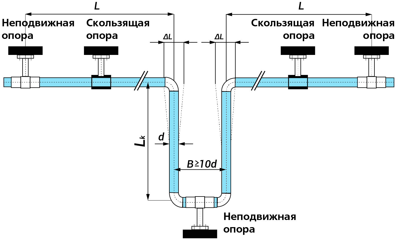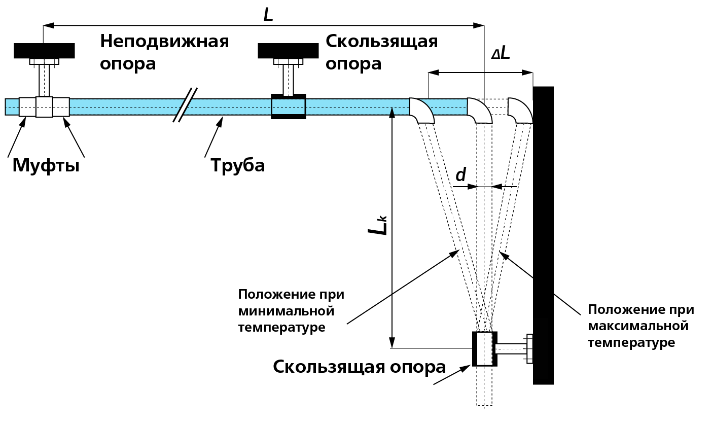 Изменение длины труб в зависимости от температуры их нагрева (тепловое линейное расширение) – явление, которое в обязательном порядке следует учитывать при проектировании трубопроводов инженерных систем. Для полимерных труб это особенно актуально. Отсутствие компенсирующих элементов или их недостаточная способность «гасить» увеличение либо уменьшение длины трубопроводов на практике оборачивается искривленными трубами, оторванными кронштейнами, опасными механическими напряжениями в конструкционном материале. Воспользуйтесь нашим онлайн-калькулятором компенсации тепловых удлинений полипропиленовых труб.