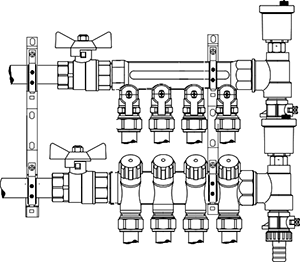 Коллектор с регулирующими вентилями, 1" х 4 вых. х3/4" нар. | VTc.560.NE.060504 | 1 | шт. |