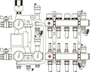 С насосно-смесительным узлом VT.TECHNOMIX, для тёплого пола площадью 60 м2