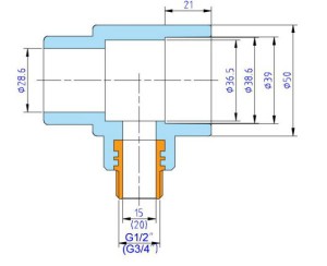 Корпус тройника выполнен из полипропилена PPR100, закладная резьбовая деталь – латунная (марка сплава – CW617N), никелированная, изготовлена горячим штампованием.