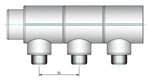 Используя тройник полипропиленовый коллекторный VTp.734, монтажник может самостоятельно изготавливать коллекторы с требуемым числом выходов. Если сваривать фитинги друг с другом, получается распределитель потоков с готовыми резьбовыми патрубками, расстояние между осями которых составляет 53–54 мм. Диаметр резьбы – 1/2 или 3/4".