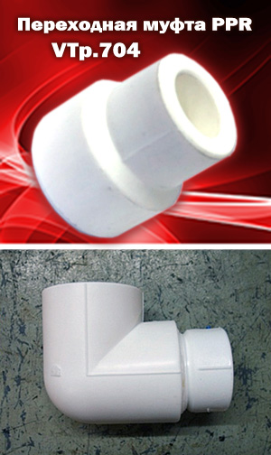 В ассортименте полипропиленовых фитингов VALTEC появилась новая переходная муфта – VTp 704. Свариваемые поверхности – внутренняя/наружная. Новинка предназначена для случаев, когда переход с одного диаметра трубопровода на другой осуществляется через фитинг, например, полипропиленовый угольник (на фото) или тройник. В этом состоит ее отличие от уже известной переходной муфты VTp 705, используемой для непосредственного соединения труб разного диаметра.