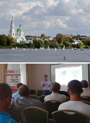 Были заслушаны доклады по системам напольного отопления VALTEC (область применения водяного теплого пола, состав и характеристики элементов систем водяного теплого пола, конструктивные особенности и монтаж систем водяного напольного отопления, программа расчета элементов инженерных систем VALTEC.PRG), а также по новинкам продукции VALTEC.