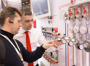 Для удобства гостей демонстрационные стенды были условно сгруппированы по информационным зонам различной профессиональной направленности – для строителей и проектировщиков, для монтажников и продавцов инженерной сантехники, для тех, кто занимается малоэтажным строительством. В зоне, адресованной всем посетителям, компания демонстрировала свои новинки. В отличие от прошлых лет в экспозиции отсутствовали стенды, представляющие товарные группы. Инженерная продукция демонстрировалась именно в составе узлов, обвязки и т.д.