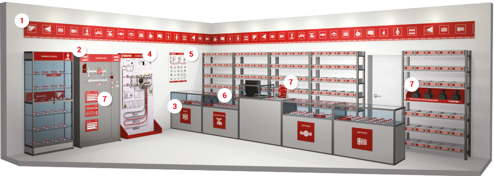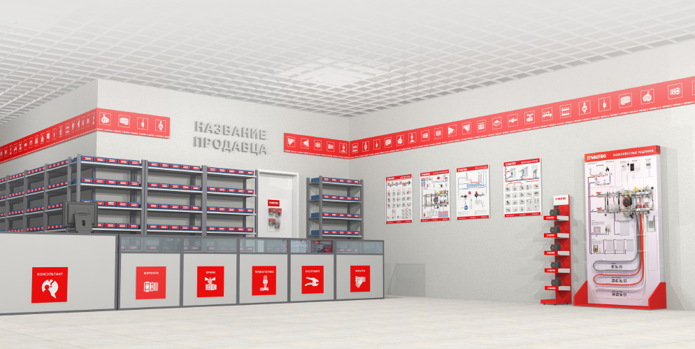 Разнообразие ассортимента позволяет использовать рекламную продукцию VALTEC как в небольших магазинах сантехники, так и в крупных гипермаркетах.