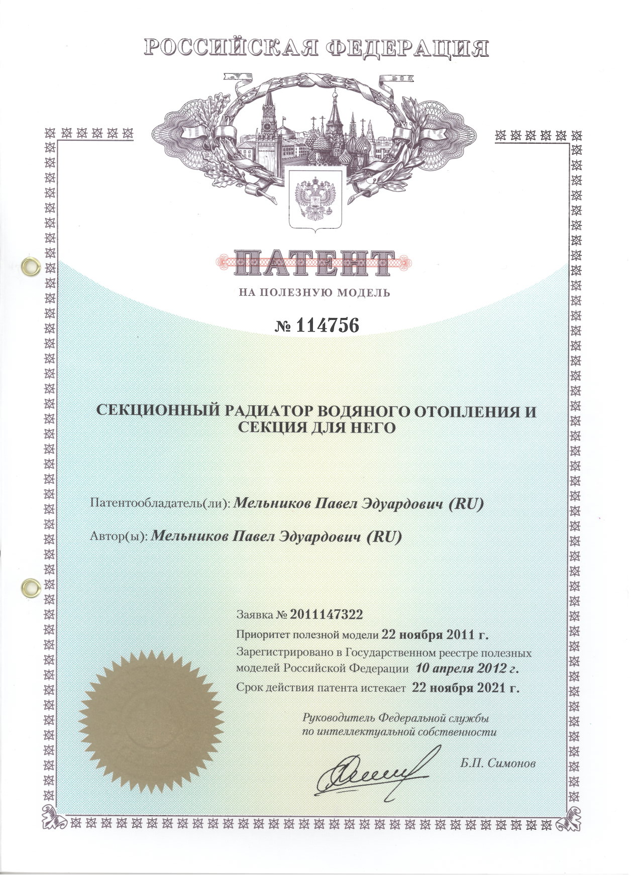 Патент № 114756. Автор: Мельников Павел Эдуардович