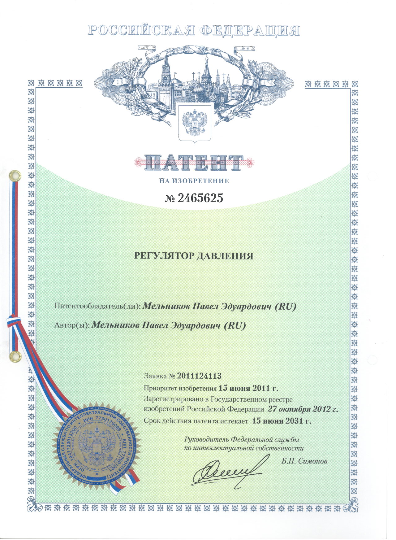 Патент № 2465625. Автор: Мельников Павел Эдуардович
