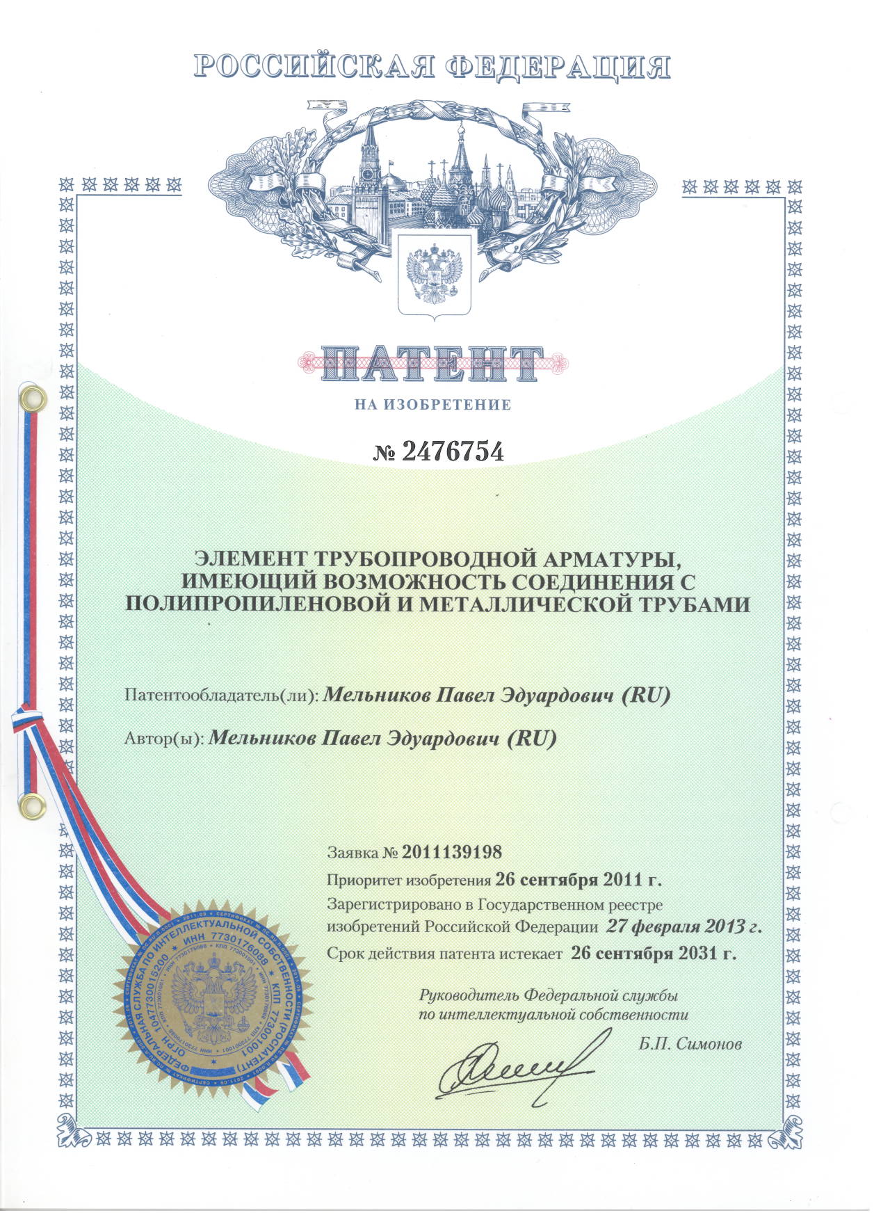Патент № 2476754. Автор: Мельников Павел Эдуардович.