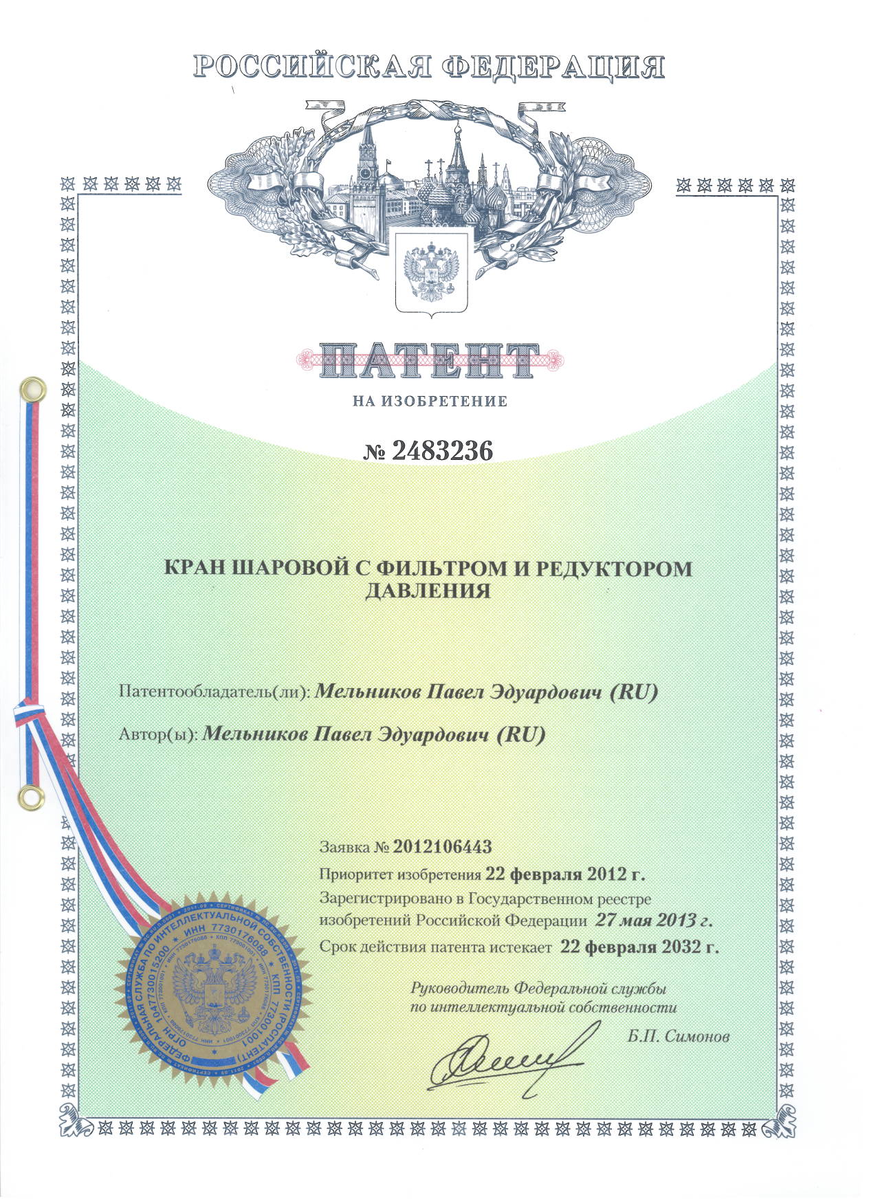 Патент № 2483236. Автор: Мельников Павел Эдуардович.